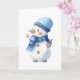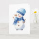 Cartão Boneco de Neve Aquarela com Cachecol Azul e Chapéu