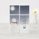 Cartão boneco de neve com estrela de Natal dourada na jan