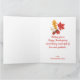 Um cartão de saudação colorido com texto elegante de tipografia "Ação de Graças", e um peru bonito com algumas folhas de outono. O cartão contém uma mensagem de boas-vindas maravilhosa no verso, que pode ser personalizada.