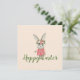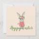 A design de Páscoa de cômica apresenta um belo coelho feminino com vestido cor-de-rosa e coroa floral em fundo de champanhe cor-de-rosa pálido. Texto personalizável do "Felz pascoa"