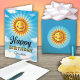Faça seu neto se sentir especial no seu aniversário enviando-lhe este sorridente sorriso decorativo Amarelo e laranja flutuando no céu azul com nuvens. O texto da dentro diz "O sol começou a brilhar um pouco mais brilhante no dia em que você estava nascer."