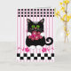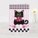 Um cartão bonito com uma ilustração do vetor nas cores na moda, mostrando flores de oferecimento de um gato. você encontrará o texto dentro do cartão. Este produto pode ser personalizado adicionando uma cor do fundo (parte dianteira) e/ou mudando as cores e/ou o texto internos do cartão.