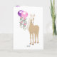 Este cartão de saudação de aniversário feliz apresenta um Bonito Pônei Palomino com flores e balões rosas e roxos. Saudação dentro - "Desejar-te um Belo Aniversário Que todos os teus sonhos e desejos de aniversário se realizem..." - por "Tudo Cavalo e Pony"