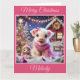 Cartão Bonito Porco de Natal Rosa na Fazenda