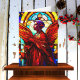 Cartão de Natal Personalizado bonito. Dentro, você pode personalizar a mensagem ou assinar seus nomes. Arte colorido anjo de vidro manchado.