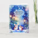 Dois camundongos bonitos se unem numa noite de inverno nevada sob o brilho quente das lanternas em meio às árvores de abeto. Verso na frente do evangelho de Luke 2:14 na Bíblia Rei James: "Glória a Deus no mais alto, e na Terra paz, boa vontade em relação aos homens". Uma carta cristã encantadora para o amante de os animais. Compartilhe sua fé neste Natal com este cartão fofo.