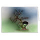 Este é um dos meus desenhos animados. Aqui está uma pequena cara verde com grandes olhos tristes e cabelo preto liso, parado sob uma árvore bonsai. Fundo em tons de azul e verde. Arte digital original de Taylor Addams.