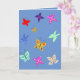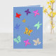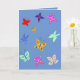 Este belo cartão de borboleta colorida é perfeito para todas as ocasiões. Apresenta lindas borboletas brilhantes em um fundo azul e é deixado em branco de propósito.