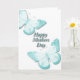 Uma Borboleta no topo e na parte inferior da imagem com a mensagem “Feliz Dia das Mães” no meio, tudo em Azul Turquesa com fundo Branco por martinspixs.