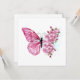 Arranjo de flores de borboleta cor-de-rosa com cereja japonesa cor-de-rosa floresce em fundo branco.