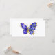 Borboleta de flores cinza, azul, safira, espumante com asa decorada com flores preciosos azuis com folhas de ouro sobre fundo branco.
