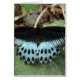 Borboleta Mórmon Iridescente Azul em folha verde profunda.
