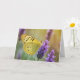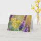 Este adorável cartão de aniversário apresenta uma borboleta amarela empobrecida na erva da lavanda.
