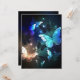 Fabulosa, brilhante, azul e amarela, borboleta noturna sobre fundo escuro.