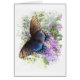 Borboleta preta em flor roxa com vazio de fundo grunge.