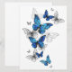 Borboletas azuis voadoras morfo e borboletas brancas em um fundo de abstrato leve. Morpho. Design com borboletas azuis morfo.
