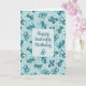 Um padrão bonito, com muitas borboletas verdes e azuis, flutucando sobre um fundo de seaglass de turquesa com pintura espalhada. O padrão é uma imagem fixa. O texto é genérico e pode ser usado como está ou você pode personalizar o texto frontal e/ou dentro.