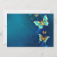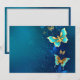 Ouro voador, borboleta de joias em fundo textural azul. Design com borboletas.