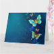 Ouro voador, borboleta de joias em fundo textural azul. Design com borboletas.