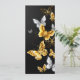 Borboletas Douradas, joias e brancas sobre fundo preto. Borboleta ouro.