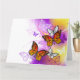 Laranja, borboletas monarcas detalhadas sobre luz, roxo, pitoresco, fundo pintado.