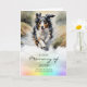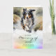 Border Collie watercolor pet dog loss sympathy card Dog sympathy Card (Cartão de simpatia de perda de cão com a coloração aquosa) com uma imagem de uma Borda em execução e o texto "Em memória amorosa de" com o nome personalizado na frente e "Não mais ao seu lado, mas para sempre no seu coração". Dentro de texto personalizado: " Sinto muito pela sua perda".