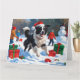 Cartão Border Collie em Santa Hat jogando neve