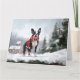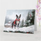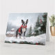 Cartão Boston Terrier Dog no Natal da neve