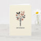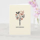 Designed with a serene, creamy beige background, this card centers a minimalist botanical illustration that feels quietly romantic ❤️. Slender dark stems rise upward like a gentle reach toward someone you care about, creating a calm, intimate focus. Along the stems, elongated black leaves mingle with warm terracotta-toned foliage, their alternating shapes suggesting an easy back-and-forth like close friends sharing a moment. Near the top, a single standout flower opens with rich black petals that curl inward as if cradling something precious. Inside the bloom, small golden stamen-like dots radiate softly, adding a tender glow that draws the eye. The overall look stays simple and refined, with smooth lines and muted contrasts that keep the scene warm rather than loud. Any wording would sit neatly around the central bouquet, with a short message in dark lettering near the top and a smaller line in a softer terracotta shade below 🌼. The flower’s black petals frame a cluster of tiny golden marks at the center against the creamy beige backdrop.