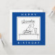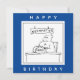 Cartão de aniversário do decisor. Um boxer está sentado em uma mesa. ele é um negociador e tem a palavra influência em uma de suas luvas de boxe. Engraçado desenho sobre negociação e influência.