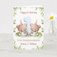 Cartão Boy Twins 1st Birthday Greenery Teddy Bear Card