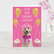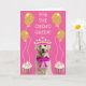 Unique and fun card for a breast cancer patient featuring a cute doggie, balloons and cupcakes.