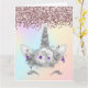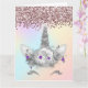 Cartão Brilhante rosa e Unicórnio prateado