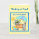 Conheça uma pessoa especial para dizer "Pensando em você" e "Você é o melhor" com este cartão de saudação de cachorro e palavras personalizáveis que você pode mudar para outras mensagens. O pensamento da sua mensagem dentro também é personalizável para suas próprias palavras. Este cachorro de cinza giro está pronto para diversão na praia ou piscina com uma bola de praia colorida e um guarda-chuva de tartaruga e praia de lavanda. Vestindo óculos de sol legal amarelos, chinelos fuchsia e turquesa, camiseta de praia laranja e um chapéu roxo e verde grande de brim, ela está pronta para ir, vestida de estilo para o sol. O fundo é amarelo. O cachorro com o sol, guarda-chuva e bola está dentro do cartão com uma saudação personalizável. O cachorro cria ajustados com terror ou outros cães cinzas pequenos com cabelo médio a longo. Este design é giro para todos os amantes de cães e é arte original da artista e designer de tecidos Phyllis Dobbs. Totalmente personalizável. Coordene com selos, guardanapos de festas e outros itens correspondentes nesta loja.