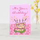 Brincadeiras De Bolo De Branca Feliz Cartão De Aniversário. Apresenta um bolo de desenho animado divertido com velas de faíscar e velas de zagueiro menores. Uma borda de bolinhas cor-de-rosa forma uma borda inferior. É o seu aniversário escrito acima de tudo, e dentro a saudação diz "Celebrar e Ter um Excelente Dia". Colorida e otimista! Comprar como está, ou personalize o texto.