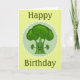 Brócolis de desenho verde divertido com um grande sorriso feliz. Modelos de texto acima e abaixo da leitura Feliz Aniversário. Manter como está ou mudar para seu próprio texto.