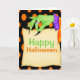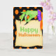 As bruxas do Dia das Bruxas dão uma nota dizendo Feliz Halloween. Cartão de saudação de Halloween.. com bruxa sobre fundo pintado a laranja e preto... vem completo com envelopes brancos... cartões de saudação de Ricaso algumas imagens com licença da CU delightful-doodles.com