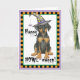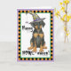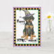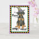 Envie cumprimentos do Dia das Bruxas com este cartão de um filhote de cachorro bonito de Dobie que veste um chapéu da bruxa decorado com uma aranha parva. Excelente para miúdos de todas as idades que amam Pinschers e Dia das Bruxas do Doberman. Tenha um Uivo-oween feliz!