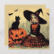 Cartão Bruxa Retro de Halloween e Gato Preto Fofo