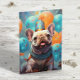 Cartão Buldogue Francês com Balões Aniversário