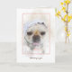 Feche o Bulldog Francês bonitinho com boné holandês branco em moldura de máscara texturizada para pensar em você.