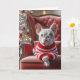 Cartão Buldogue Francês De Natal Na Cadeira Vermelha