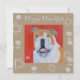 Pintura a óleo de um Bulldog com fundo vermelho e texto.