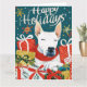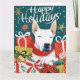Este cartão cômico de Natal apresenta um cão encantador num suéter de férias, este cartão humorístico adiciona um toque lúdico aos vossos cartões de natal, combinando o amor dos cães com o espírito da estação.