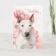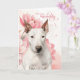 Cartão Bull Terrier Dog Pink Botanical Flowers Birthday
