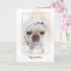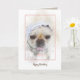 Cartão Bulldog francês com boné de renda holandês