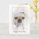 Feche o Bulldog francês giro com boné holandês branco e límpido no quadro de máscara texturizada para o Dia do Nome.