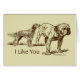 O setter inglês sniffs o bumbum de um buldogue com o slogan "que eu gosto de você". Ilustração engraçada do cão.