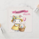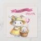 Um cartão de Páscoa encantador para a primeira Páscoa de uma menina. Um coelhinho bonito de amarelo com uma cesta de ovos.