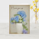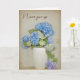 Flores púrpuras e azuis de hydrangea com renda da Rainha Anne em um vaso com cobertura texturizada para encorajamento.